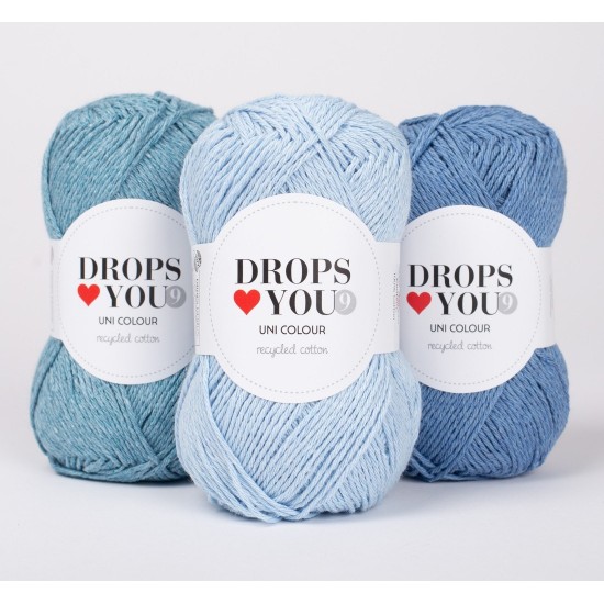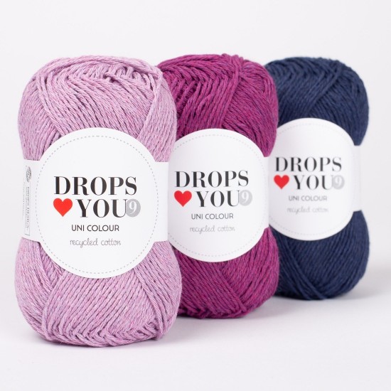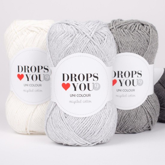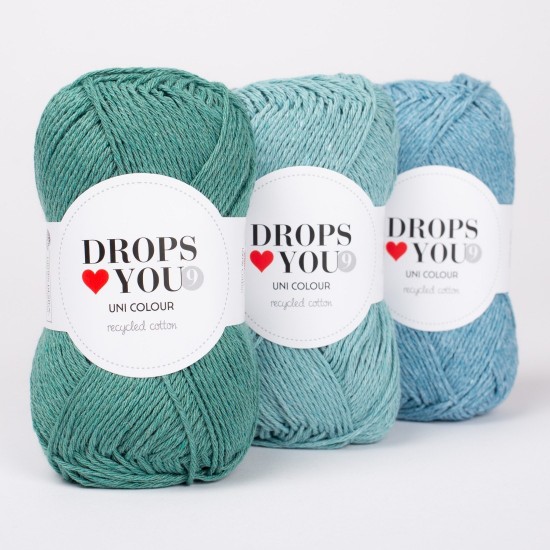 DROPS Loves You 9 е мека и цветна памучна прежда, изработена от 100% рециклиран памук. Толкова приятна за плетене, както на една, така и на две куки. Перфектна е за пролетни и летни плетива, интериорни проекти като поставки за съдове, кърпи за съдове, пелени и бебешки лигавници и др. Биха се получили много интересни и устойчиви плетени играчки - амигуруми! Това е прежда, с която се плете бързо и лесно. Подходяща за начинаещи в плетенето. Плетивата дишат добре, изключително издръжливи са и могат да се перат в пералня, което прави преждата чудесен избор и за детски дрехи!