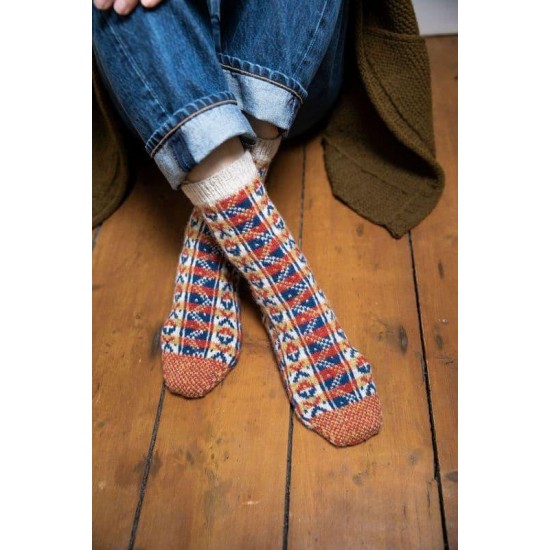 Join knitwear designers Mary Jane Mucklestone and Gudrun Johnston for a true Shetland adventure! Their first co-authored book Grand Shetland Adventure Knits is a love letter to these fascinating islands, their nature, traditions and people. It features 14 knitwear patterns that are perfect for a trip to Shetland: from cozy socks and hats to colorwork sweaters.